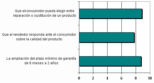 Todos los planteamientos de la ley obtienen una puntuación elevada, sobre todo que el consumidor pueda elegir entre la sustitución o reparación del producto y la ampliación del periodo de garantía.