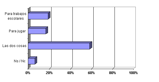 En siete de cada diez hogares, aunque a veces sea sólo para uso lúdico, el ordenador forma parte de los bienes de consumo. El 58% de los entrevistados afirman que se utiliza de forma indistinta, tanto para jugar, como para los estudios.