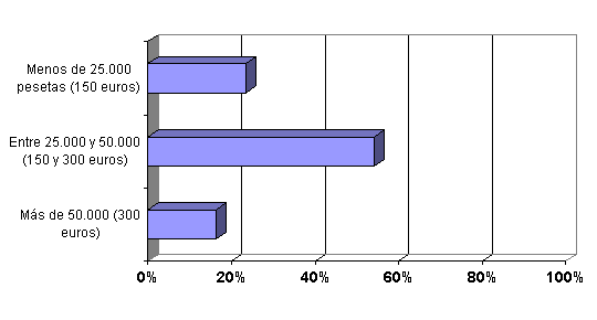 Menos de 25.000 pesetas (150 euros) |