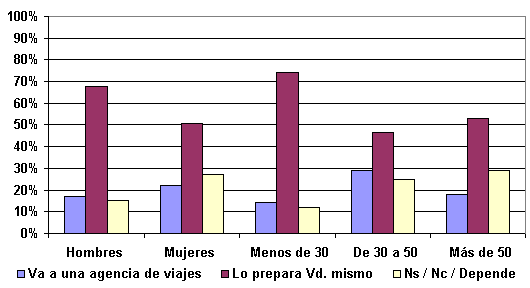 Se observa cierta preferencia por parte de los más jóvenes y de los hombres a preparar los viajes por su cuenta.