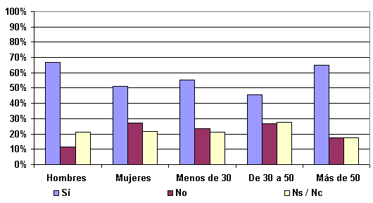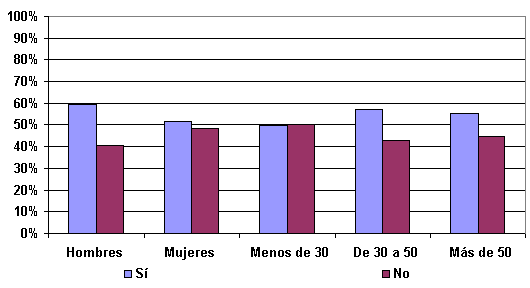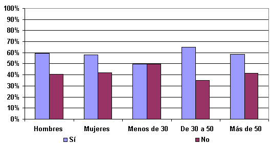Casi el 60% de los entrevistados consideran que los catálogos publicitarios suministrados por las agencias de viajes dan suficiente información sobre los viajes. El grupo de mediana edad se muestra un poco más crítico en este sentido.
