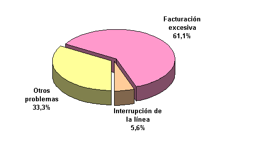 La facturación excesiva sigue siendo el principal problema que afirman tener los consumidores españoles con sus respectivas compañías. También se repiten otras quejas como la activación de servicios no solicitados y las dificultades para dar de baja otros, además de interrupciones del servicio y frecuentes averías. En cuanto a la resolución de dichos problemas, el procedimiento a seguir por los afectados, en la gran mayoría de los casos, ha sido acudir a la propia compañía.
