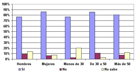 El envío de mensajes SMS es exclusivo de los jóvenes. En función de la edad se observa una progresión inversamente proporcional en el uso de los mensajes cortos. El 85% de los menores de 30 años se comunican mediante el sistema SMS, mientras que poco uso se hace de este servicio entre los mayores de 50 años.