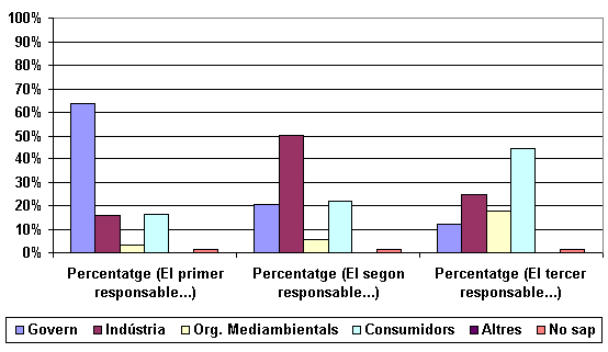 Pregunta 03.- Qui, segons la seva opinió, hauria de ser responsable de gestionar els assumptes mediambientals? (...i en segon lloc) (...i en tercer lloc)