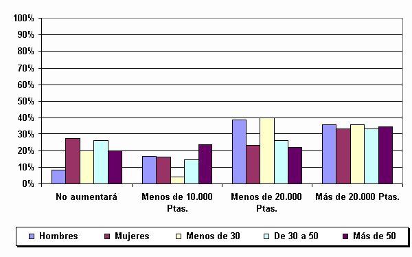 La valoración media en el gasto de alimentación durante la época de Navidad superará las veinte mil pesetas. Un 23% de la población tiene la intención de no gastar más de lo que se gasta habitualmente en alimentación. A pesar de estas intenciones, si analizamos la encuesta efectuada el año pasado que se realizaron después de las fiestas de navidad, se deduce que esta intención no deja de ser mera intención ya que pasadas las fiestas casi todo el mundo admite haber gastado más de lo habitual.