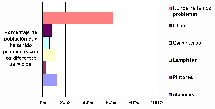 En función de los gremios, se observan diferentes grados de satisfacción de los servicios que prestan. Así, el gremio de albañiles y lampistas son los que más quejas han acumulado. Cabe destacar que también son los servicios que más se solicitan.