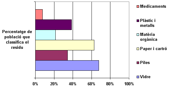 El vidre és el residu més seleccionat, encara que en relació a altres estudis anteriors, els plàstics i altres materials van adquirint més terreny en el difícil hàbit de la classificació dels residus.