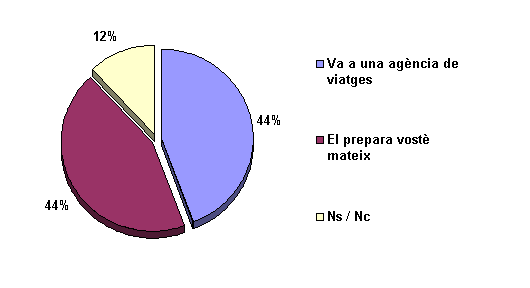 Els catalans realitzen les seves vacances cada cop més per mitjà dels serveis de les agències de viatge. Durant l' any 97, l' ús de les agències era d' un 23.98%; durant 1998 fou d' un 35.36%, i en l' actualitat arriba al 50 per cent. Amb la forta irrupció de Internet com a forma més econòmica i immediata per a reservar un vol o altre tipus de viatge comú, les agències s' estan transformant de intermediàries de les companyies de transport en gestores de vacances i de viatges que per la seva complexitat necessiten alguna cosa més que una simple reserva de bitllet.