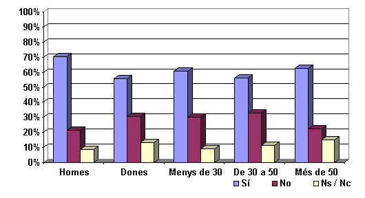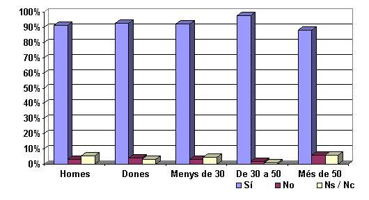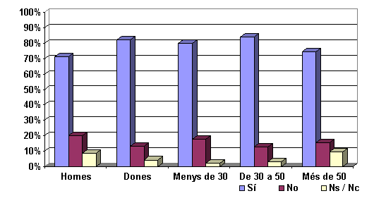 L’etiquetatge en el sector alimentari ofereix força confiança, més encara en les dones amb una experiència més gran a l’hora de fer la compra. Les instruccions que informen sobre com fer ús dels productes es tenen en compte quasi per unanimitat. També, encara que en un menor percentatge, el grau d’acceptació de la higiene dels establiments. En aquesta resposta difereixen significativament les dones, compradores per excel·lència de productes alimentaris, cosa que indica que els homes són o bé menys crítics o vol dir que no coneixen tant aquest terreny.
