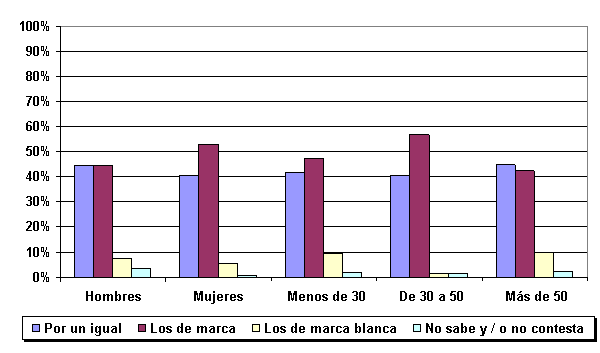 La marca es una garantía de mayor calidad para los compradores, aunque la marca blanca en bastantes productos está considerada de igual calidad.