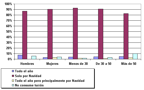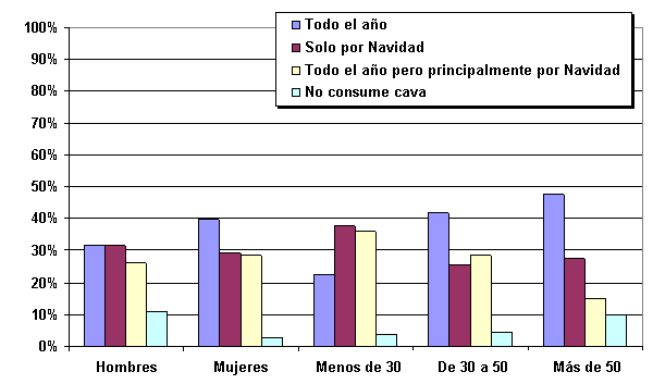 Aproximadamente un 95% de la población consume cava y turrón. El turrón es una tradición casi exclusiva de esta época. Por lo contrario, el cava si bien es ineludible como producto navideño, se consume de una forma mucho más aleatoria.
